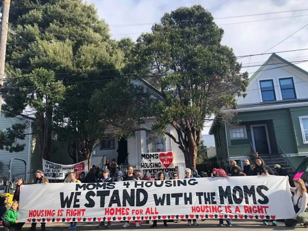 David Solnit, Community Support Outside of Magnolia House, Jan 2020. Reproduction courtesy of David Solnit and Moms 4 Housing.
