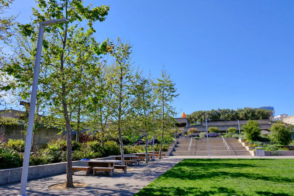 Beyond the gallery walls, OMCA’s campus offers another way to experience these ideas in practice. The Museum’s terraced garden, overlooking Lake Merritt, has been thoughtfully landscaped with native and drought-tolerant plantings representing California’s diverse ecoregions. From coastal forests to oak woodlands and delta landscapes, the OMCA garden reflects the richness and specificity of place.