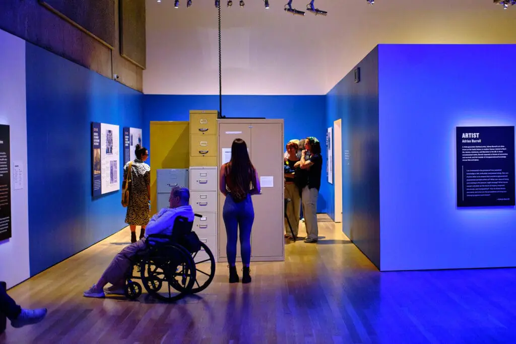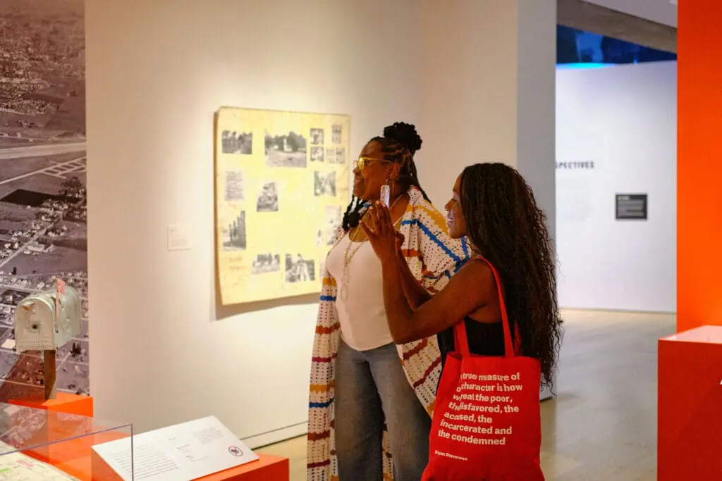 Drawing inspiration from the legacies of West Oakland and Russell City, Black Spaces: Reclaim & Remain pulls from both OMCA’s permanent collection and loans from local repositories to trace the rise of these communities and their subsequent displacement. In response to this history, the exhibition presents three unique perspectives from an artist, Adrian Burrell; an architect, June Grant with blinkLAB architecture; and an archive, the Archive of Urban Futures and Moms 4 Housing. These installations reflect the ongoing struggle and success in reclaiming and reshaping self-determined spaces in the face of systemic violence, erasure, and urban renewal.
